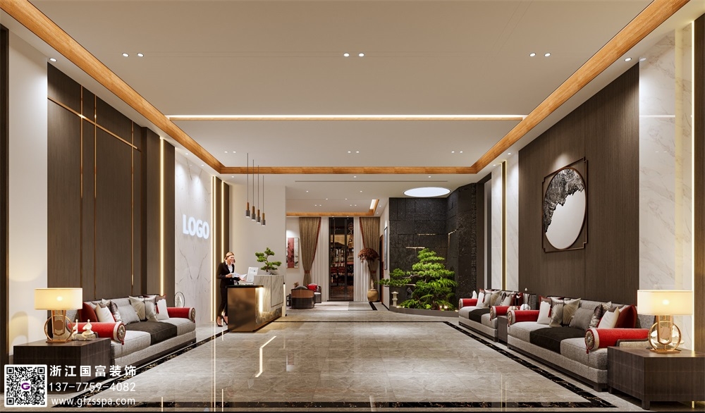 現代中式洗浴中心裝修設計案例效果圖