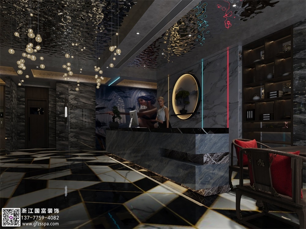 簡約中式洗浴會所裝修設計案例效果圖