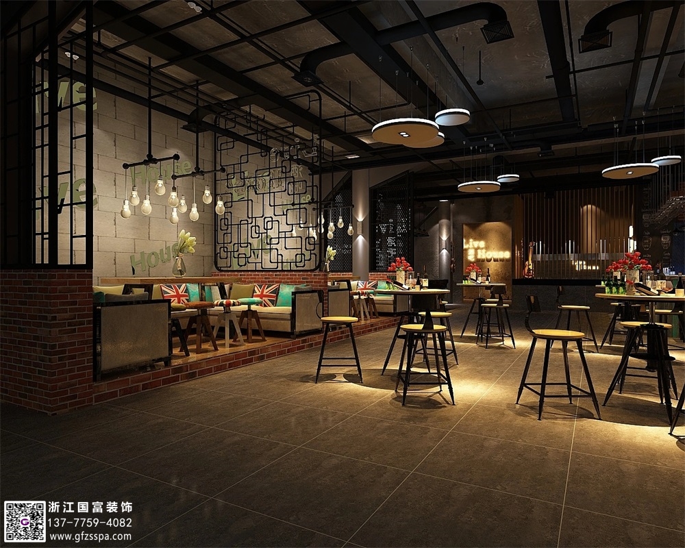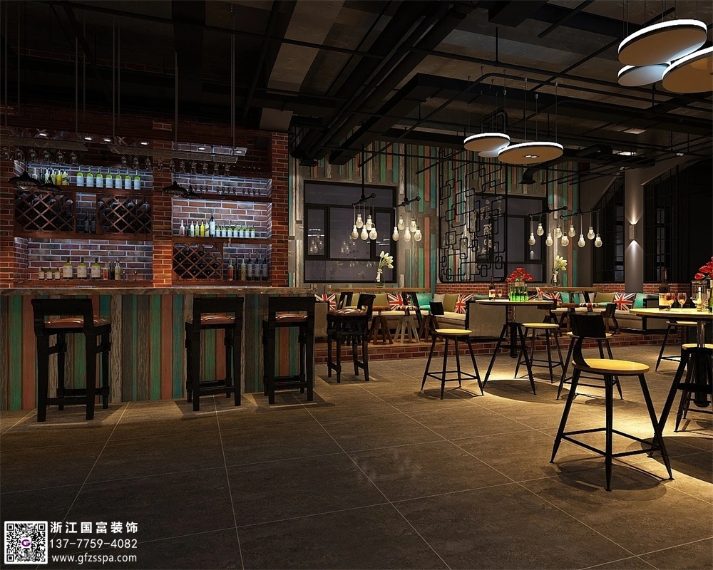 杭州工業風酒吧裝修設計案例效果圖